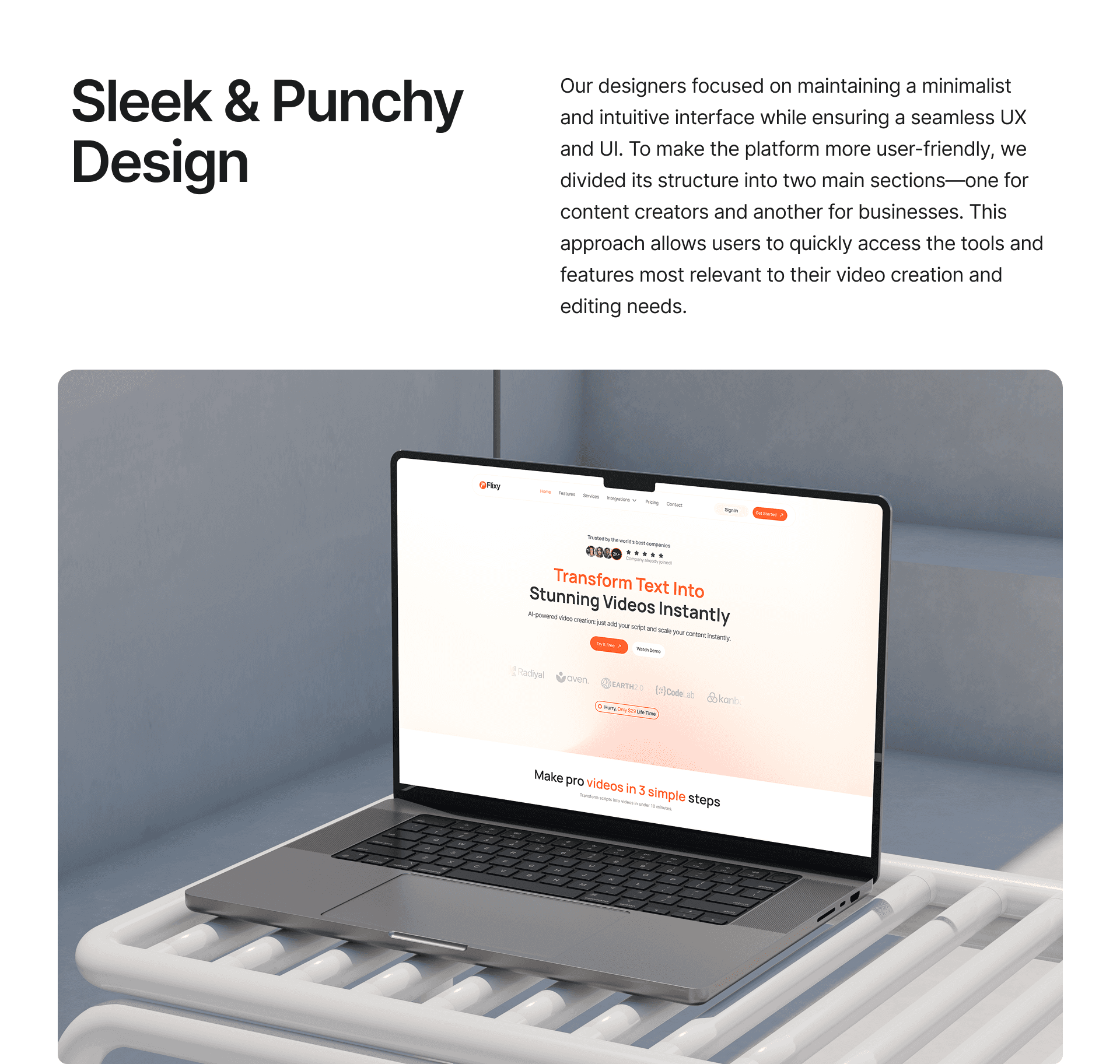 The final solution delivers a scalable, conversion-focused AI SaaS platform that supports creators, marketers, and businesses in producing engaging video content efficiently, while maintaining usability, performance, and confidence in AI-generated results across all touchpoints.