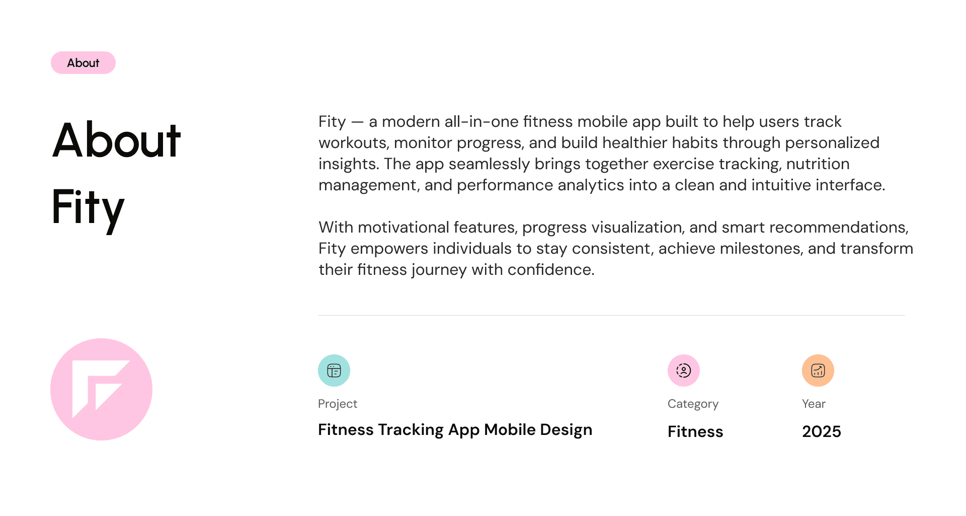 Fity is a comprehensive fitness tracking mobile app designed to help users achieve their health and wellness goals with ease. This case study explores the end-to-end design process, focusing on creating an intuitive and engaging user experience that motivates users to stay active, track their progress, and maintain healthy habits. Key highlights include the app’s seamless onboarding flow, personalized activity tracking, progress visualization through interactive dashboards, and integration of goal-setting features. The project emphasizes user-centered design principles, usability testing insights, and iterative improvements to deliver a product that balances functionality, aesthetics, and user motivation.